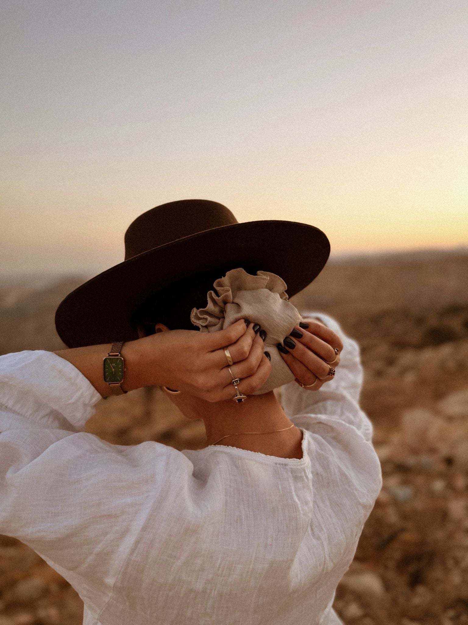 כיסוי שיער מעודן עם גומייה נסתרת, שמעניק אחיזה מושלמת ומראה נקי כשאת חובשת כובע רחב שוליים .